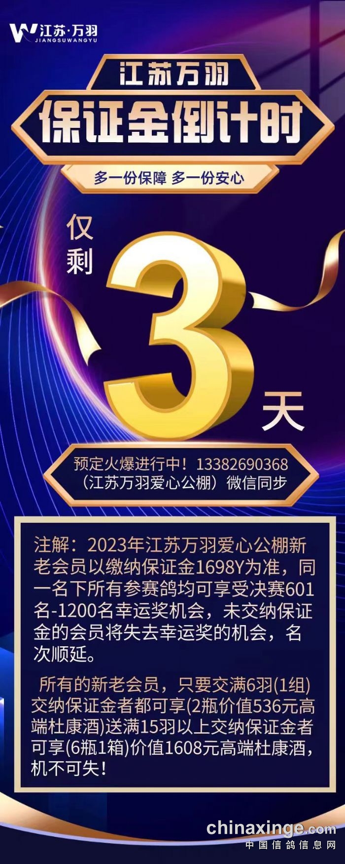 江苏万羽爱心公棚温馨提示保证金即日起倒计时3天