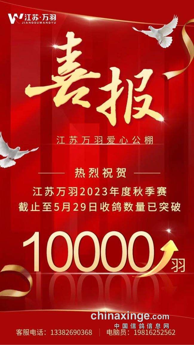 热烈祝贺江苏万羽爱心公棚收鸽突破10000羽