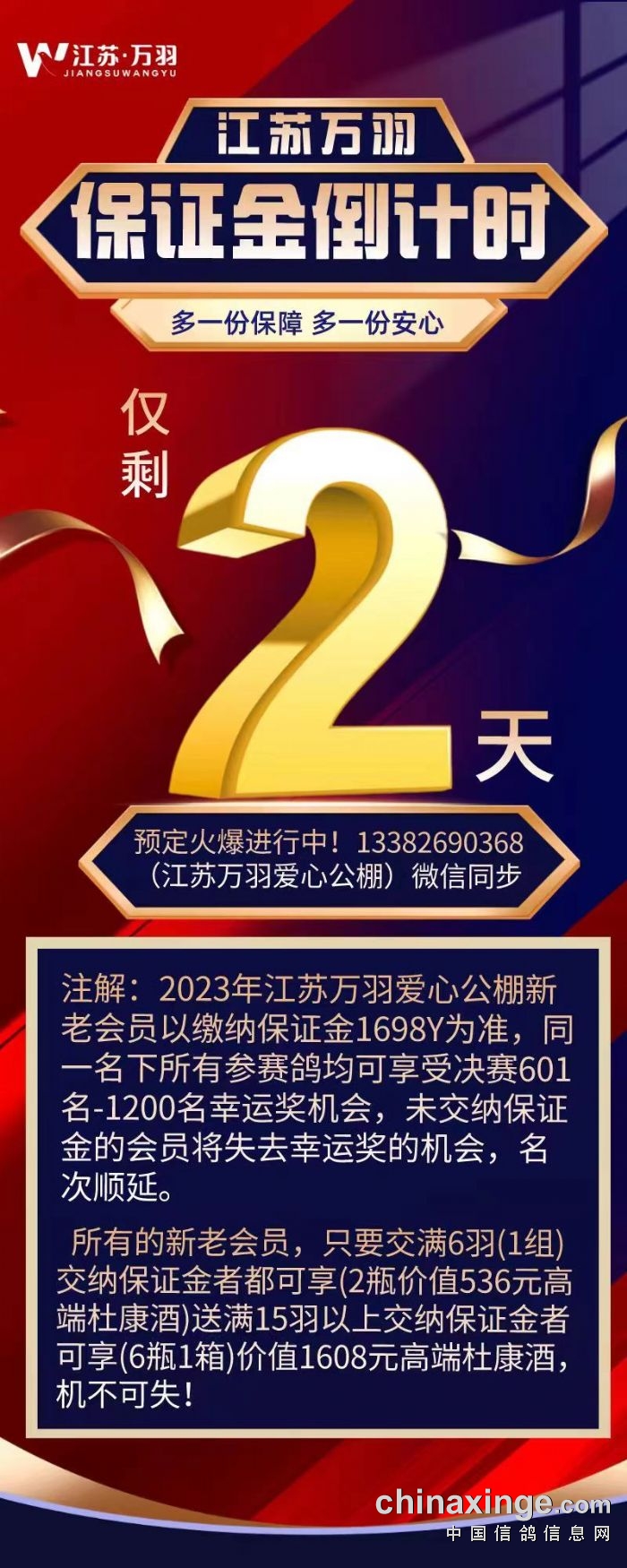 江苏万羽爱心公棚温馨提示保证金即日起倒计时2天