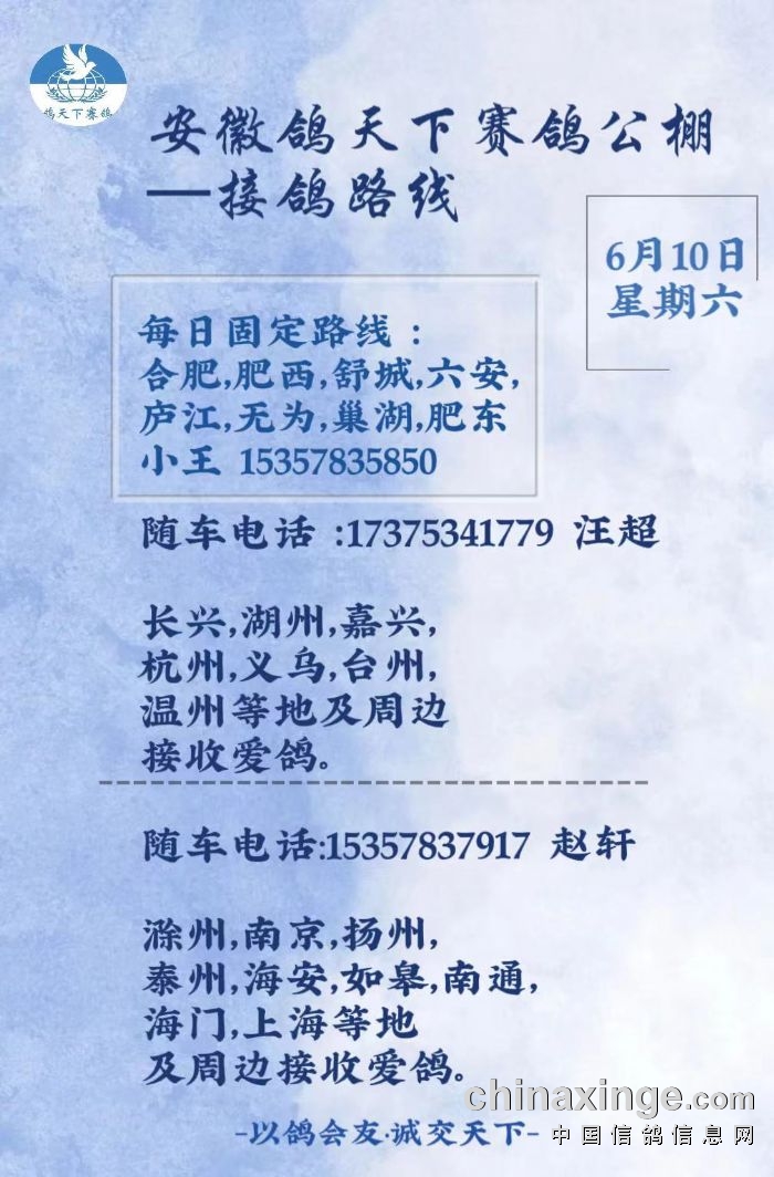 安徽鸽天下赛鸽公棚(春棚)-接鸽路线