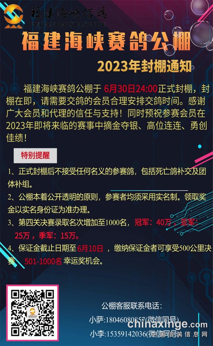 福建海峡赛鸽公棚2023年封棚通知
