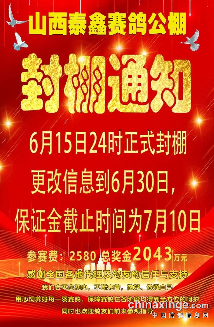 山西泰鑫公棚2023年第二届秋季赛正式封棚公告