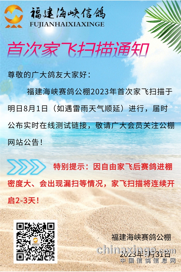福建海峡赛鸽公棚2023年首次家飞扫描通知