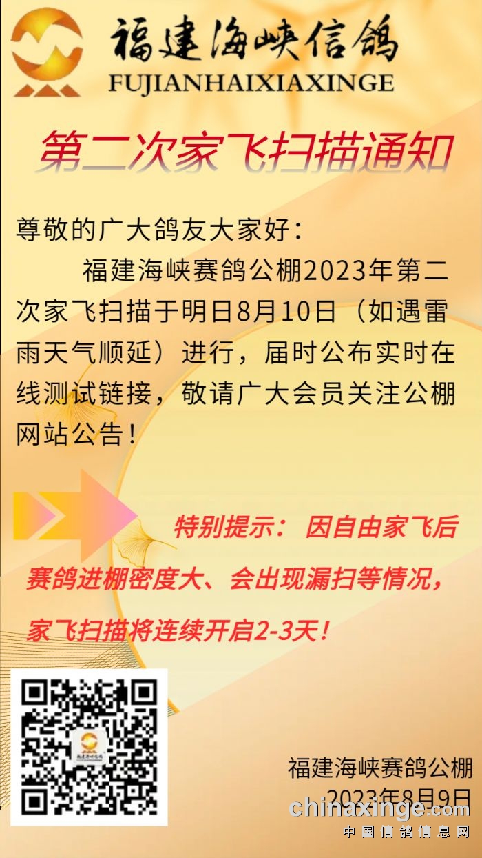 福建海峡赛鸽公棚2023年第二次家飞扫描通知