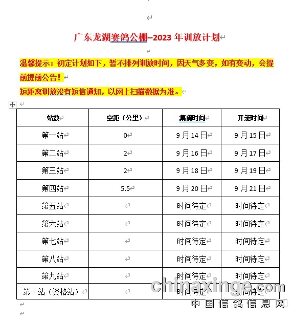 广东龙湖公棚第四站约5.5公里训放定于9月20号晚集鸽,21号早上开笼。如遇恶劣天气改期另行通知!