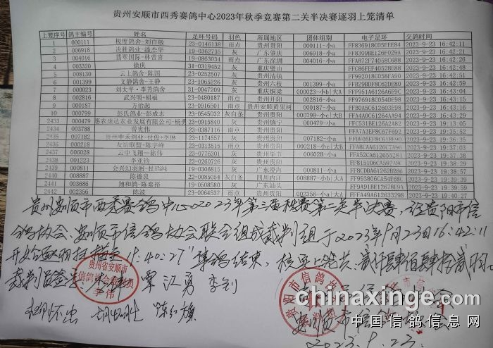 西秀赛鸽:2023年第三届秋赛第二关(220-280公里)半决赛逐羽扫描上笼清单