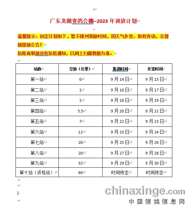 2023广东龙湖赛鸽公棚--训放计划9