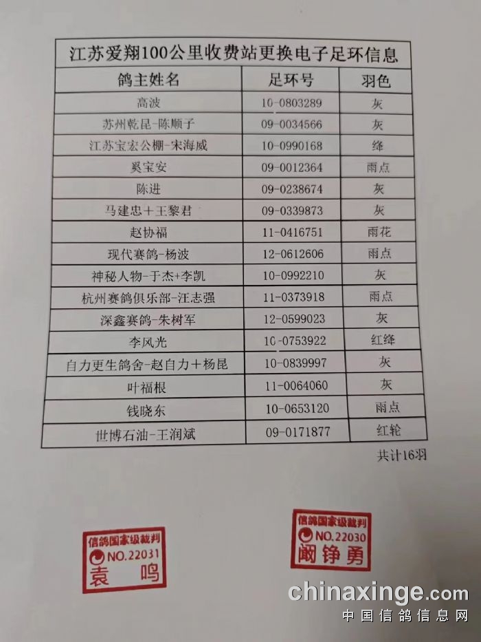 江苏爱翔:100公里收费站羽色及电子环更换信息