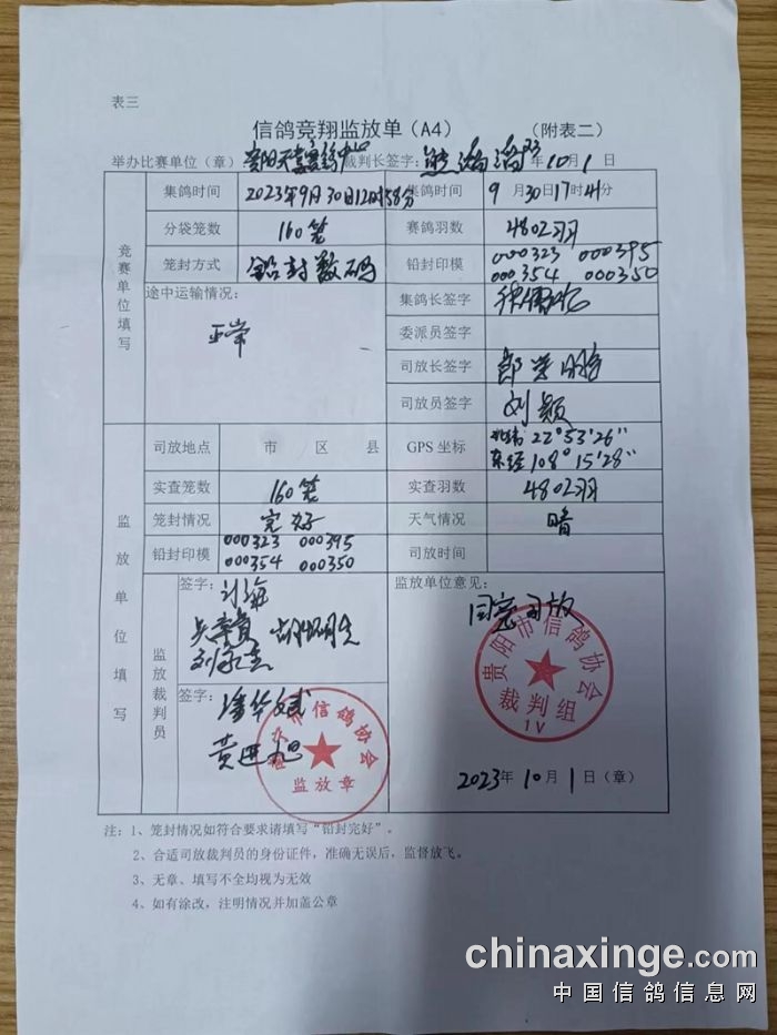 天喜公棚2025年:第三关450公里总决赛逐羽上笼清单
