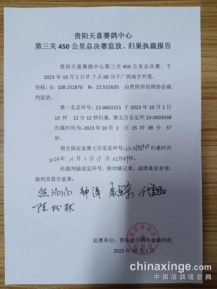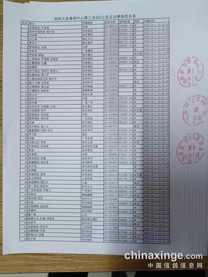 天喜公棚2025年:第三关( 450公里)决赛通知