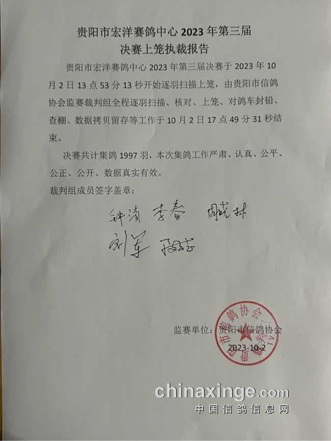 贵阳市宏洋赛鸽中心2023年第三届决赛实时在线