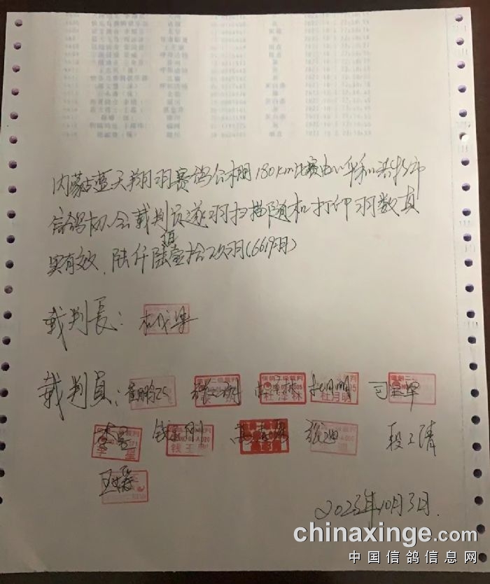 蓝天翔羽180公里热身赛随机打印裁判认证单
