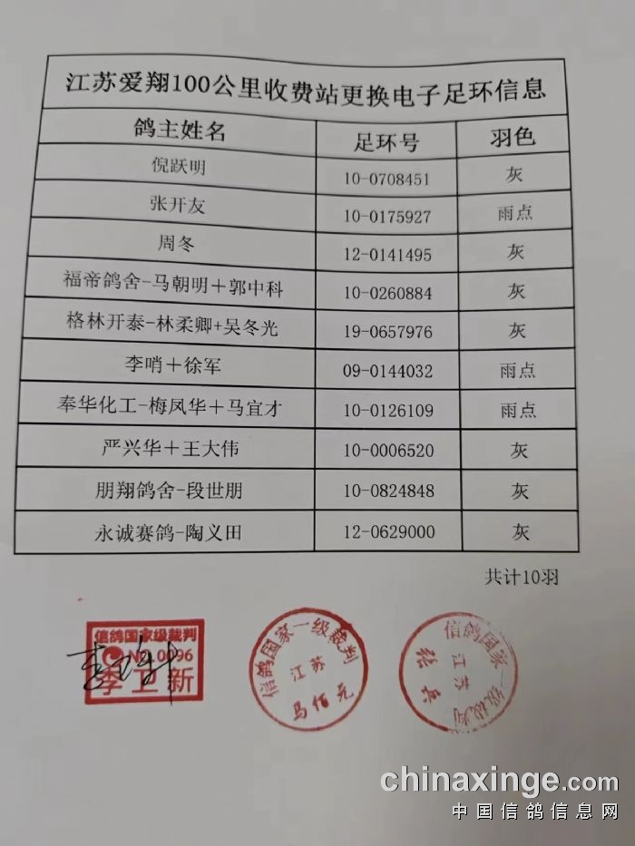 江苏爱翔(秋棚):4月1-2日接鸽公告