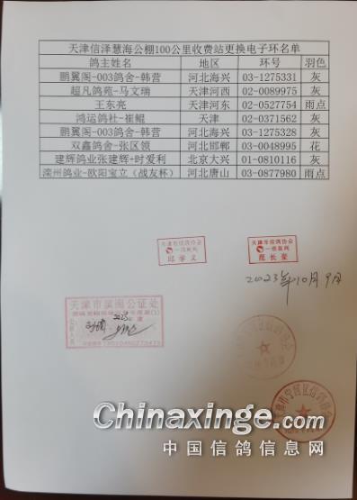 天津信泽慧海公棚180-200公里热身赛未上笼退费名单
