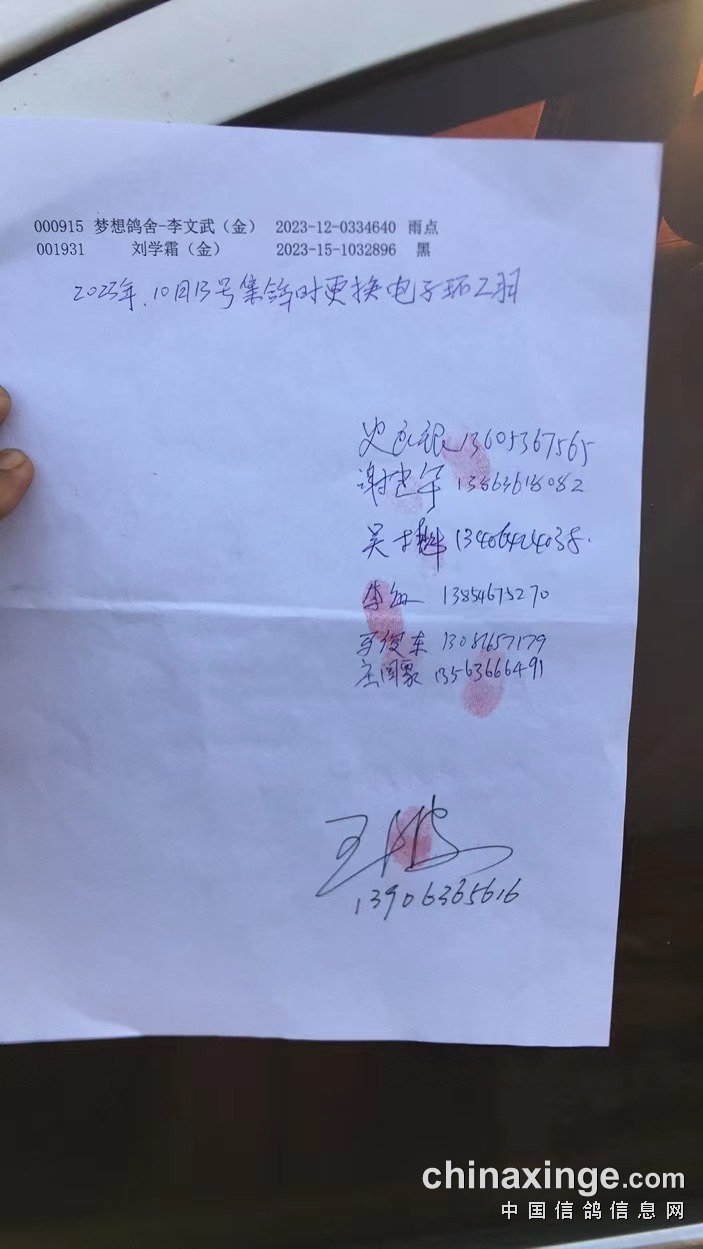 山东玉鑫赛鸽公棚 280-300公里 更换电子环名单