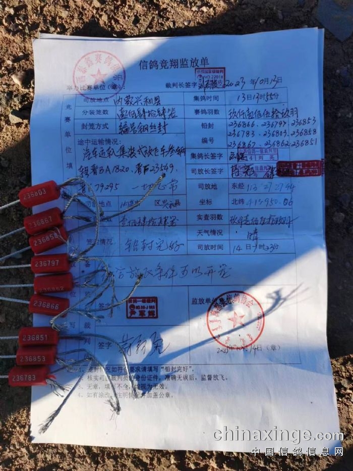 2025年第四届山西泰鑫赛鸽公棚加战赛第一关执行裁判代表签字确认