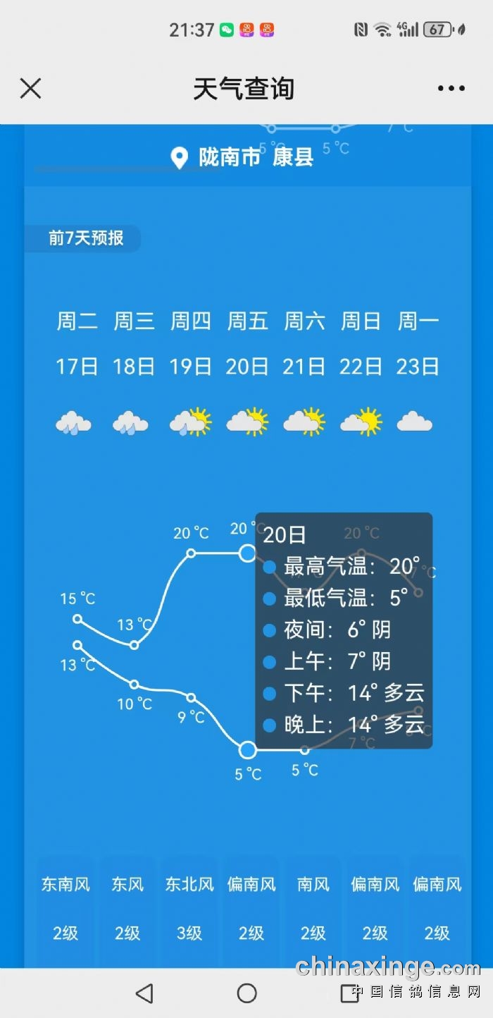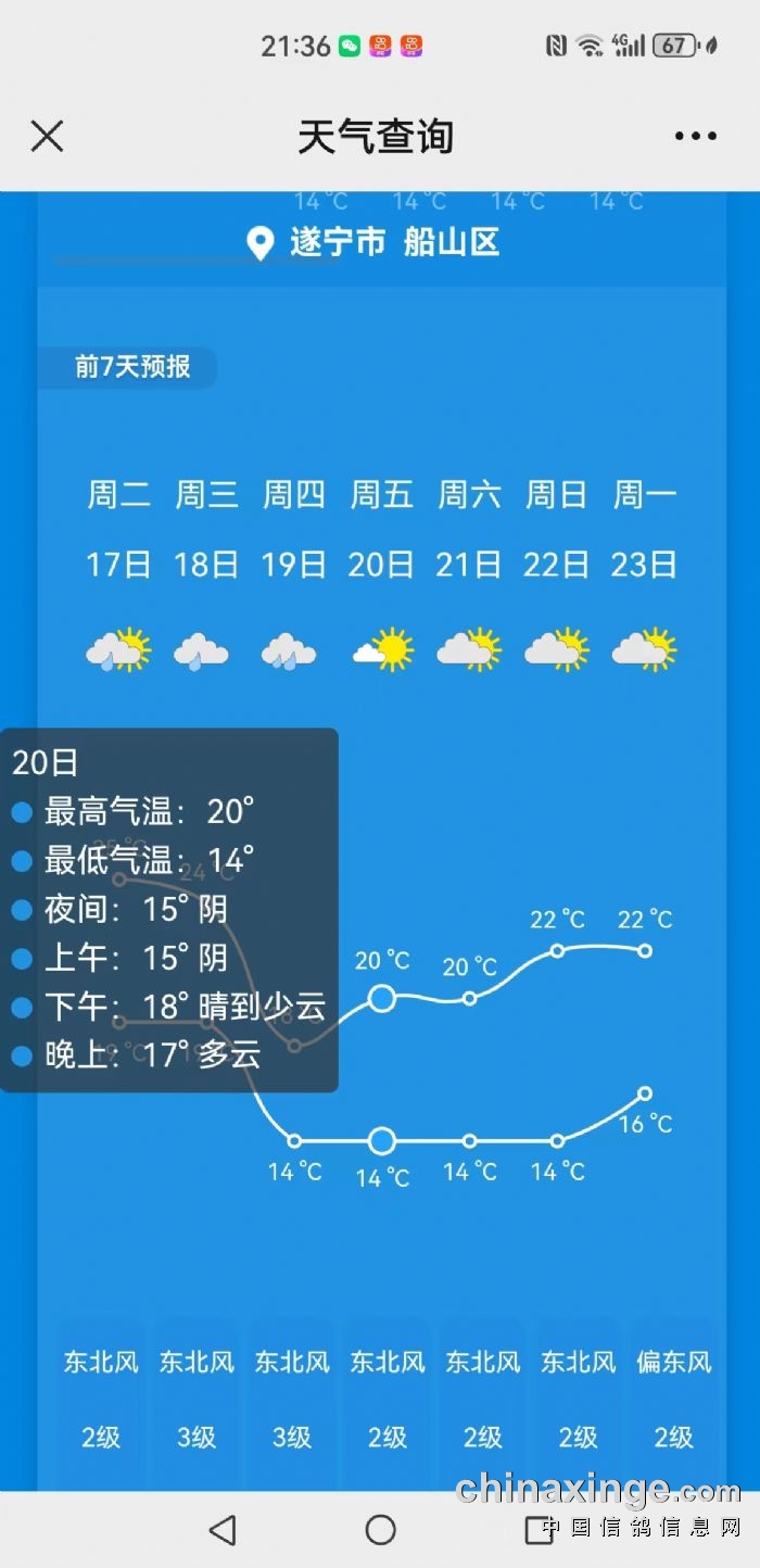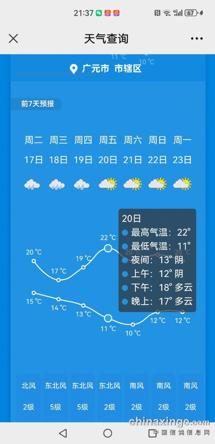 根据比赛规程,依据“天气在线”天气预报提供的天气信息,2023年10月20日从司放点到俱乐部沿线均为晴或多云天气,2023年秋三关职业赛首关天水站(约430公里)定于10月19日13时开始集鸽(若天气预报显示10月20日不适合放飞,则集鸽日顺延,此种顺延不受“提前三日通知”的约束)。