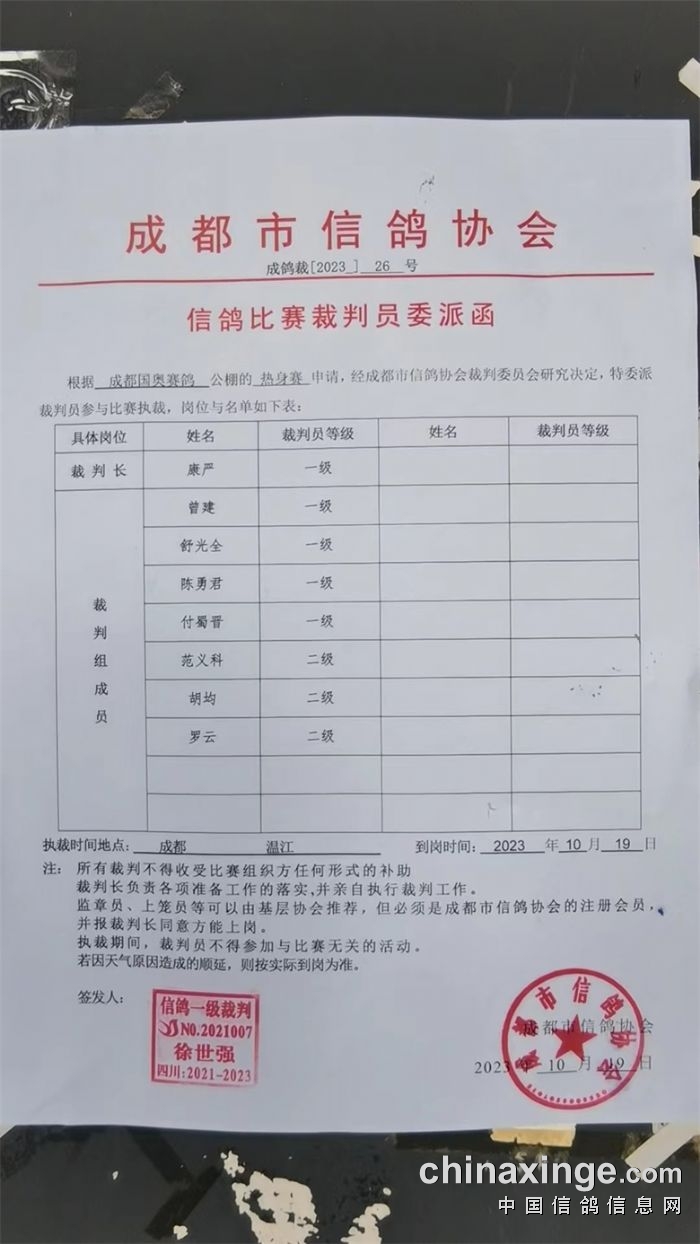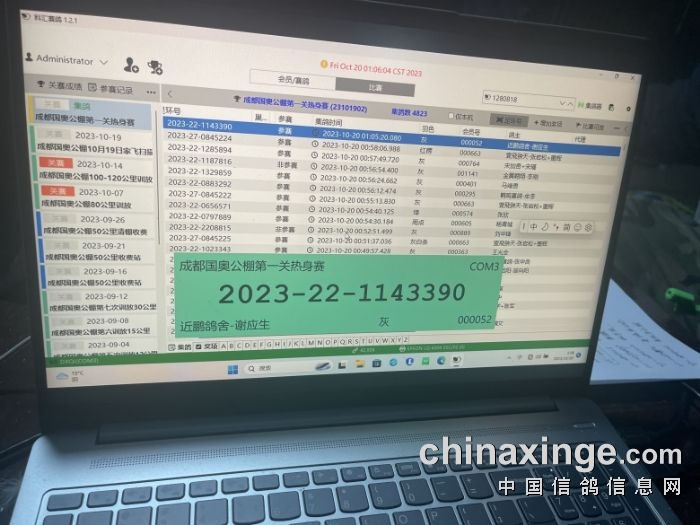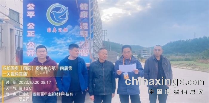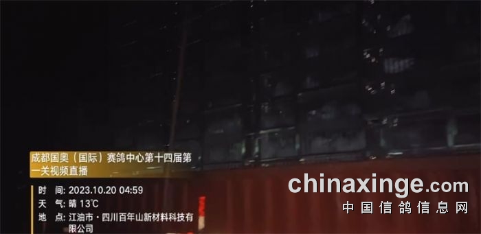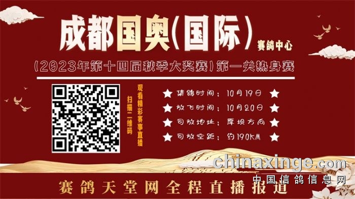 成都国奥(国际)赛鸽中心2023年第十四届第一关热身赛于2023年10月19日在成都市信鸽协会委派的裁判组及鸽友代表,荣-华-传-媒-全程视频直播的共同监督见证下,于10月19日19:50分开始全棚赛鸽逐羽扫描、上笼,加强了监督力度,整个操作流程规范。共计集鸽4823羽。