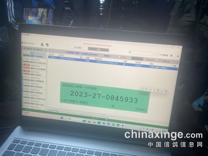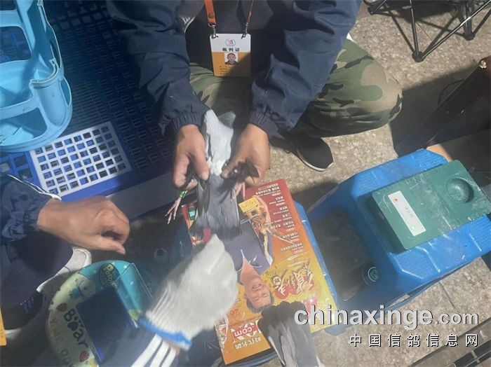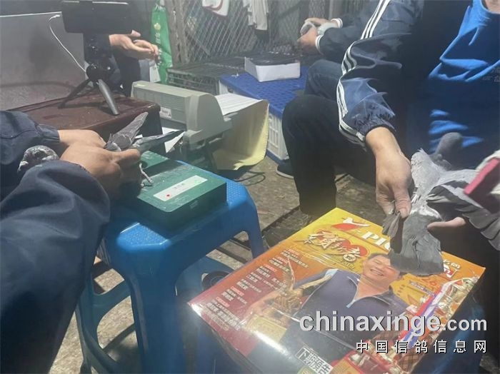 第一羽扫描上笼环号:2023-27-0845933在裁判组的监督指导下,多机位进行现场直播,全程集鸽工作有条不絮的进行。