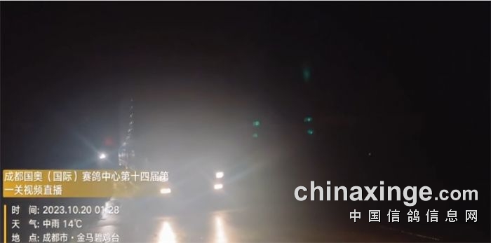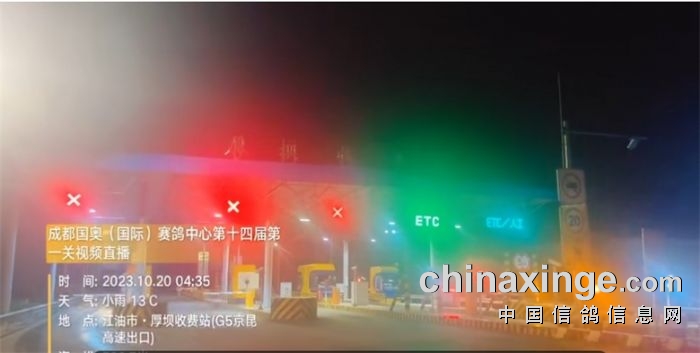 集鸽结束后,集鸽车从公棚出发前往司放地。10月20日凌晨02:00分集鸽车从崇州市玫瑰广场收费站上高速。