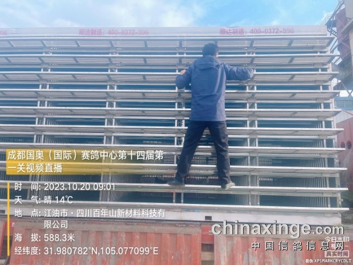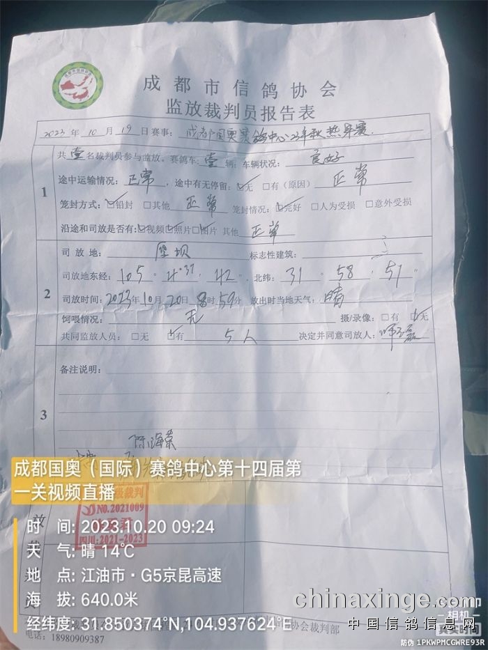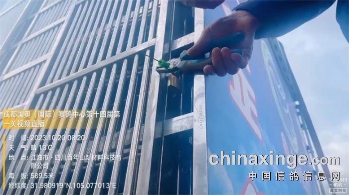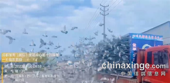 2023年10月20日上午08:59分在厚坝开笼。经度/纬 31°58′50.8800″N.105°4′36.8400″E,随着裁判员的一声令下,鸽车开笼,4823羽赛鸽有序出笼。