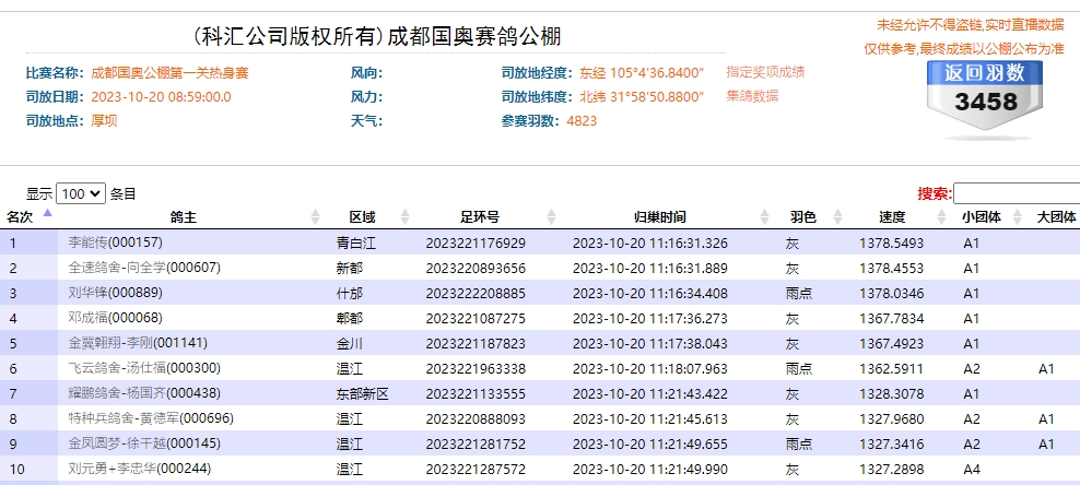 截止发稿前,归巢3458羽,归巢率约71.6%。关注更多精彩赛事扫码关注信-鸽-天-堂!