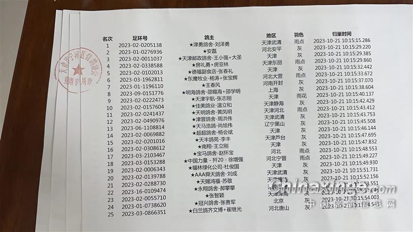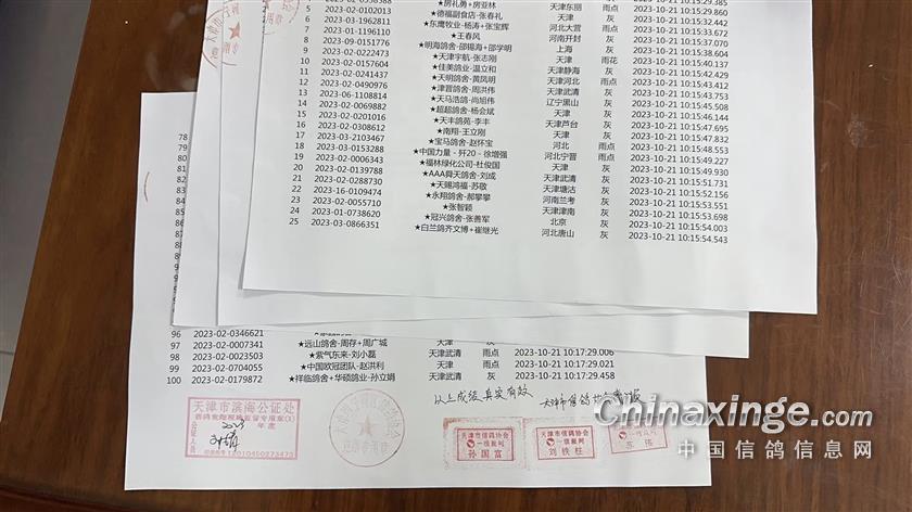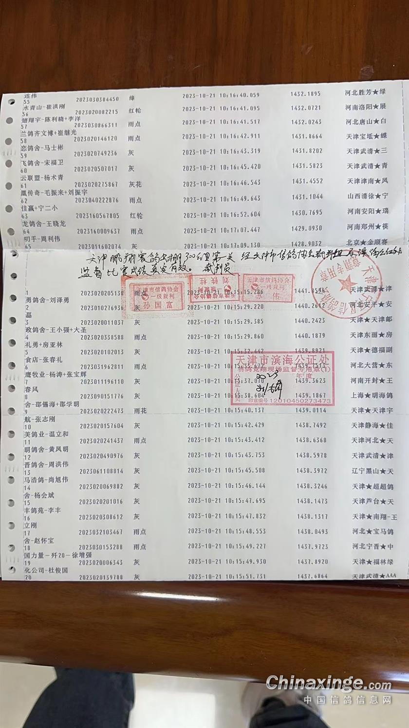 天津鹏翔公棚300公里(预赛)获奖信息真实有效