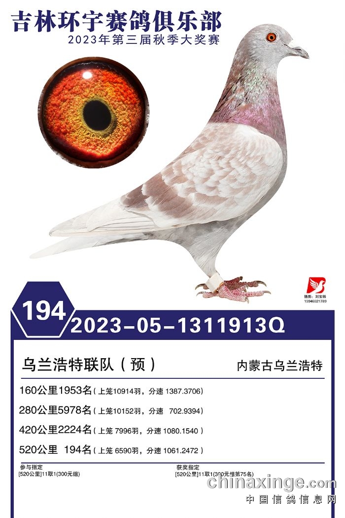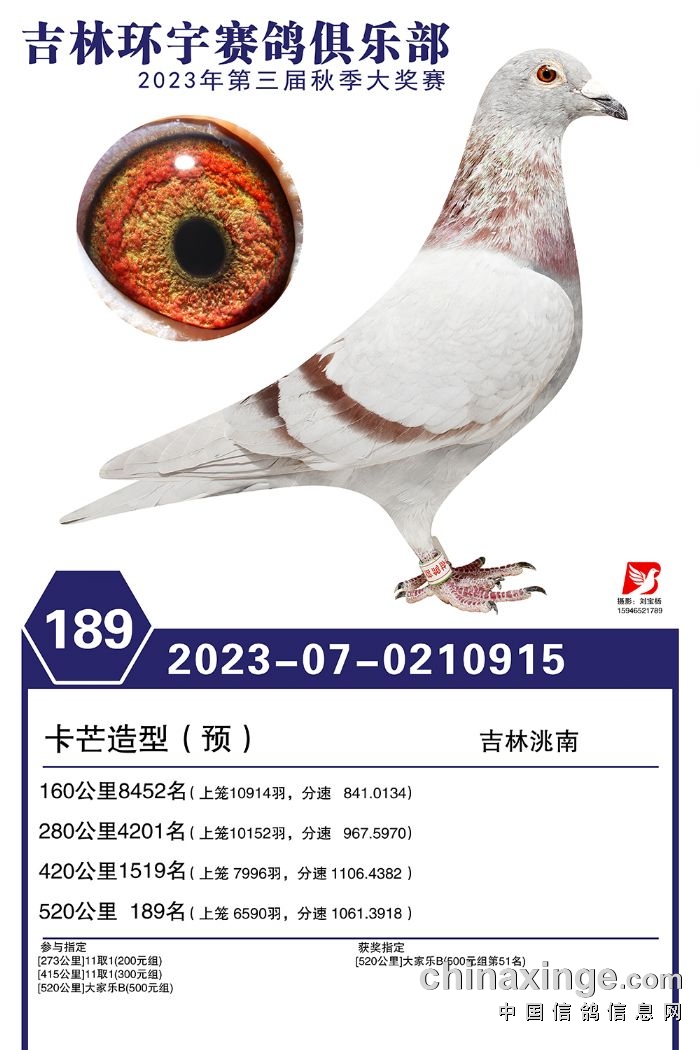 环宇公棚(大)420公里集鸽数据(按上笼顺序)