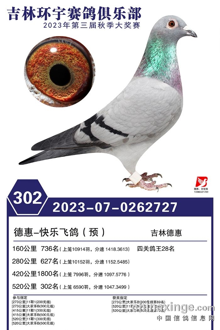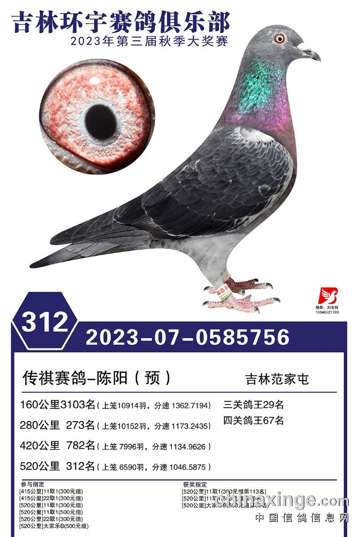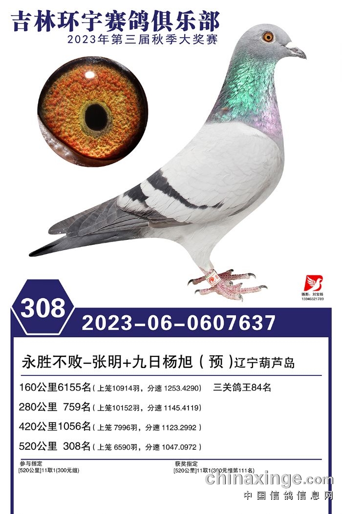 环宇公棚(大)420公里集鸽数据(按上笼顺序)