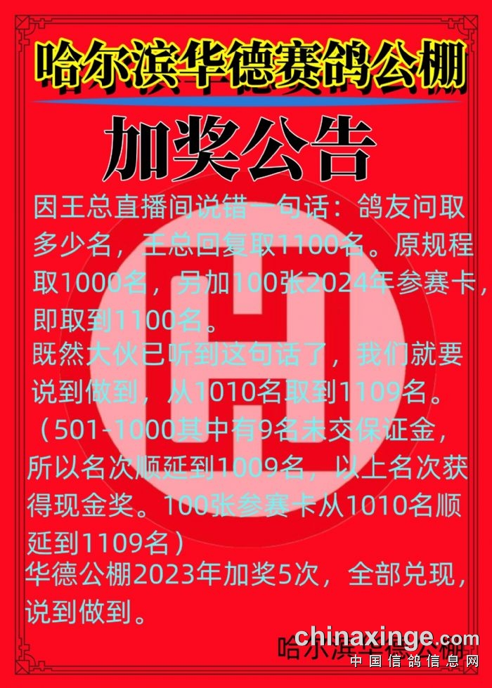 哈尔滨华德公棚加奖公告