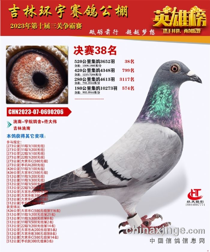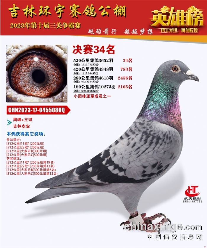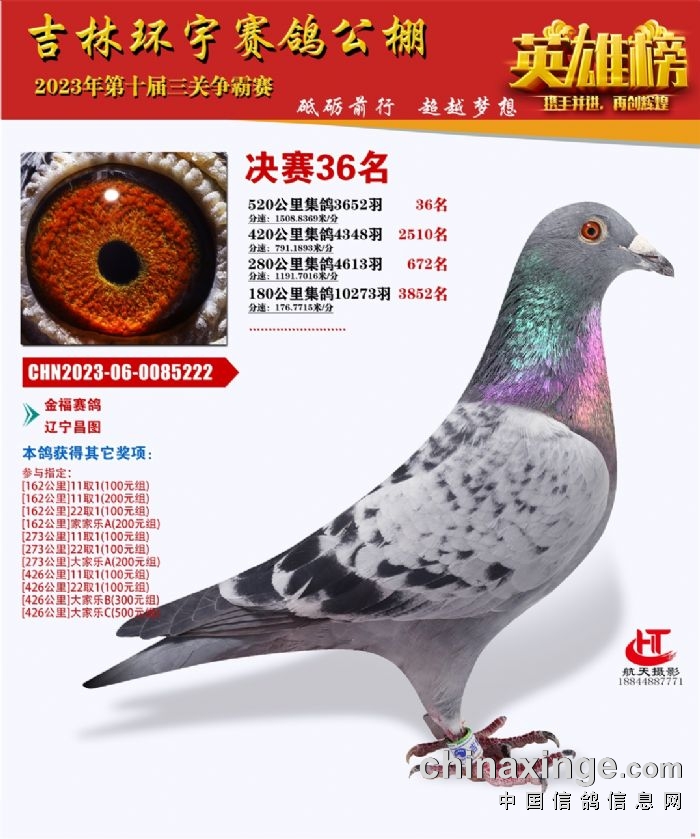 吉林环宇(小)2025年加站赛1-15名获奖鸽照片赏析