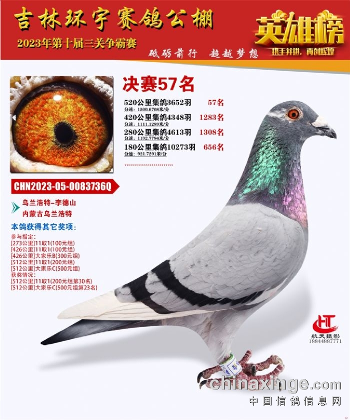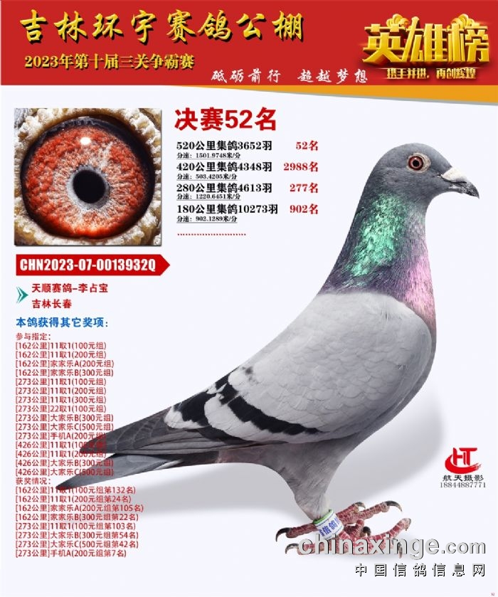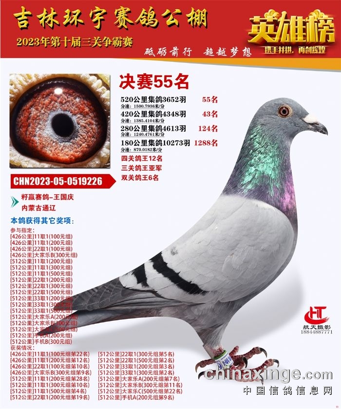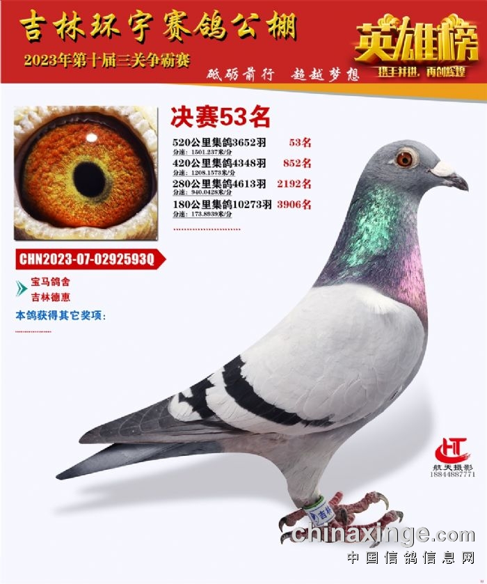 吉林环宇(小)2025年加站赛1-15名获奖鸽照片赏析