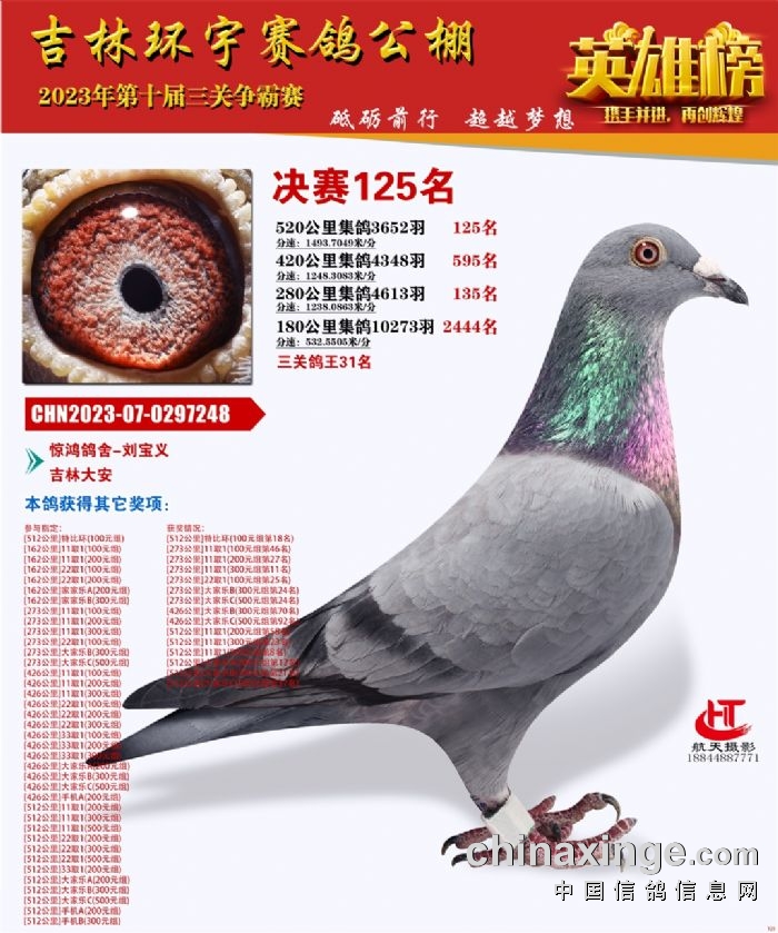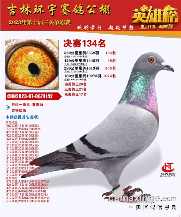 • 吉林环宇(小)2025年加站赛1-15名获奖鸽照片赏析 (2025-10-20 20:02:42)