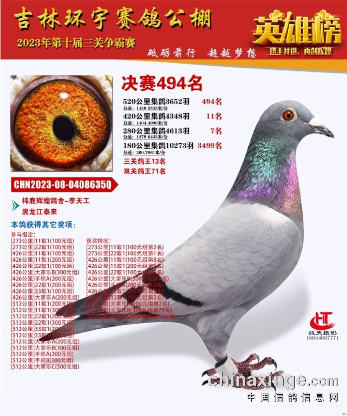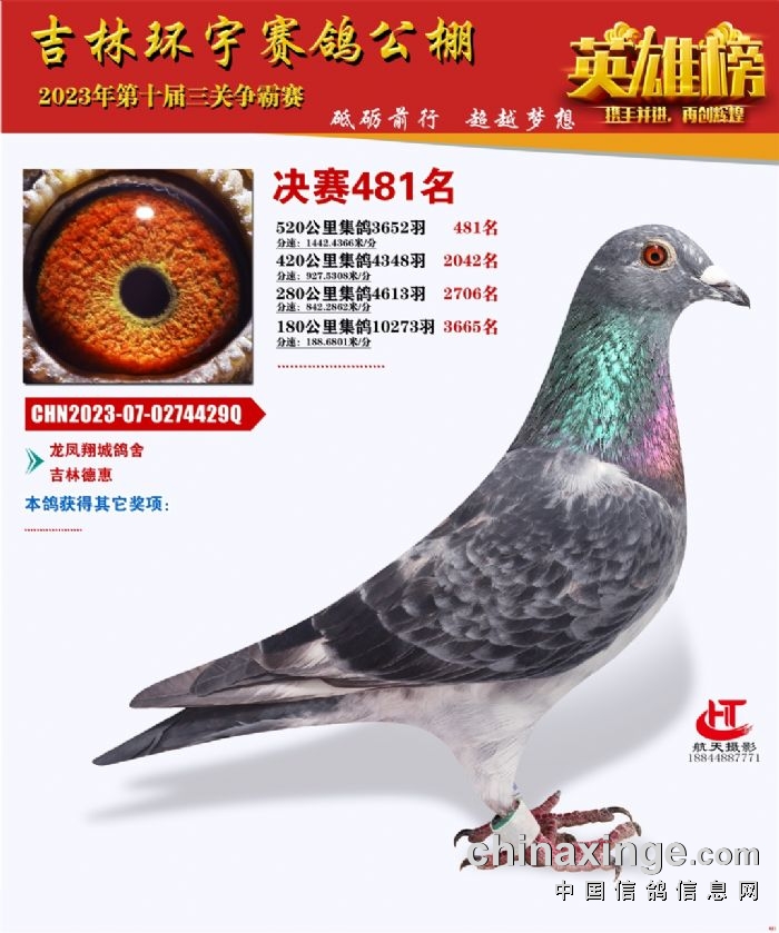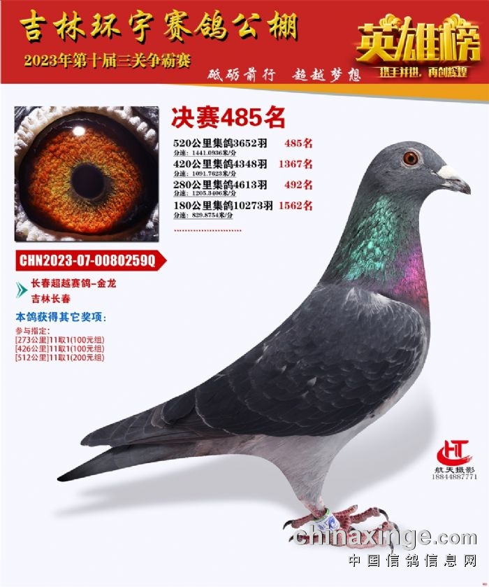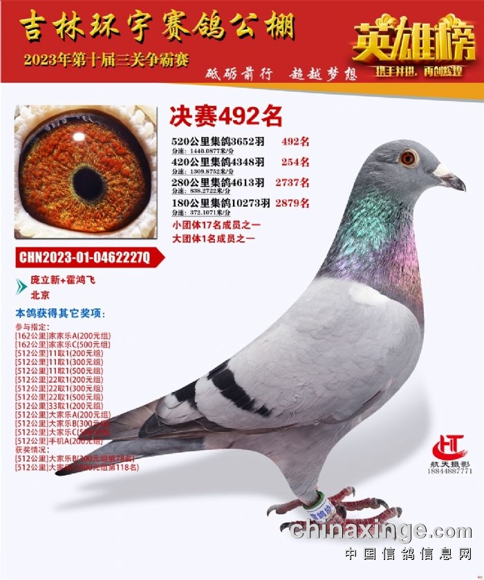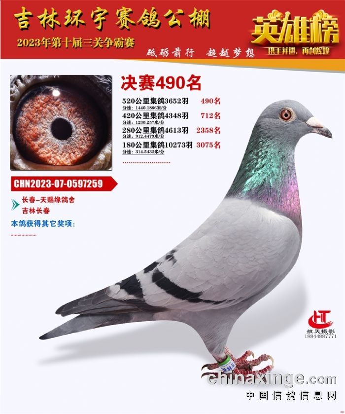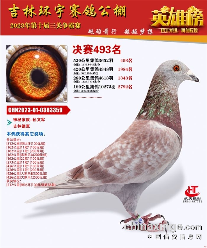 吉林环宇(小)2025年加站赛1-15名获奖鸽照片赏析