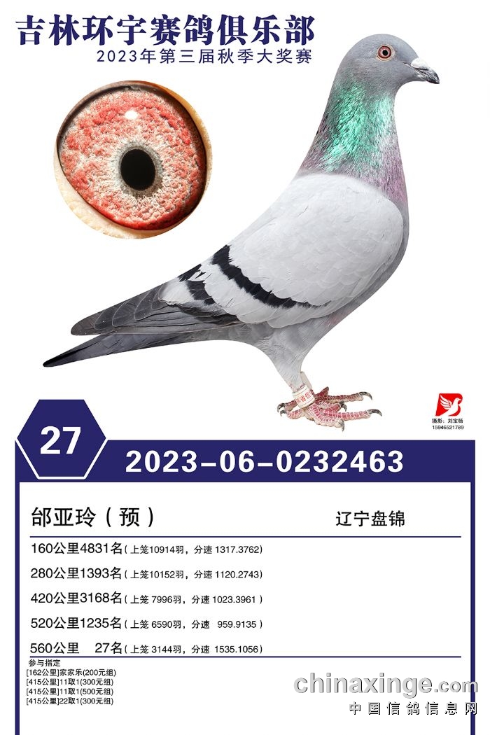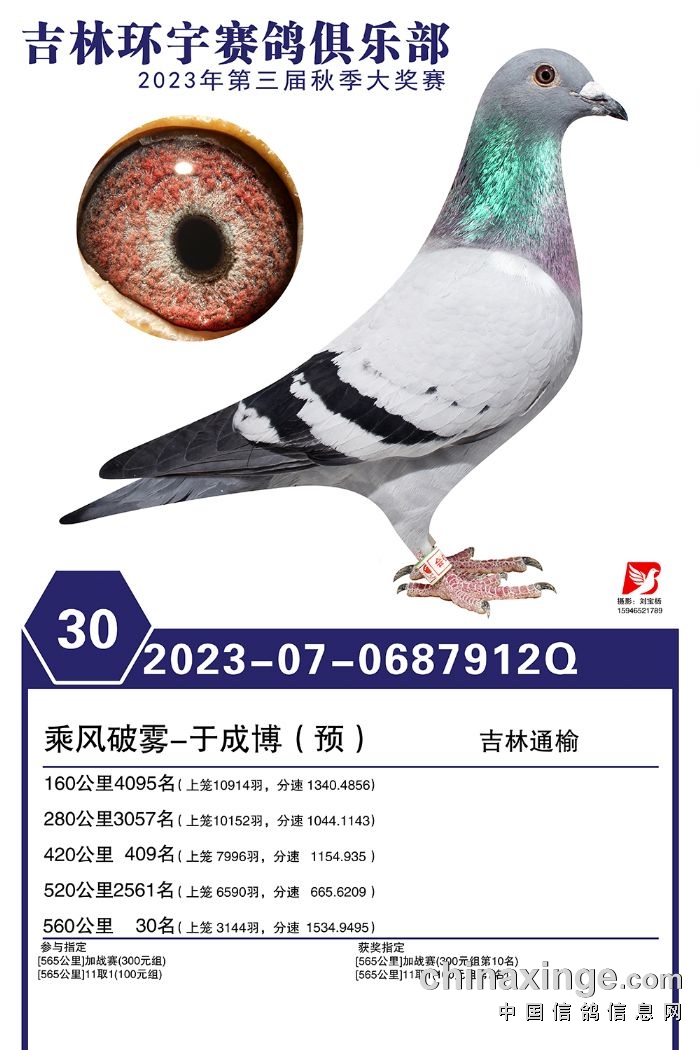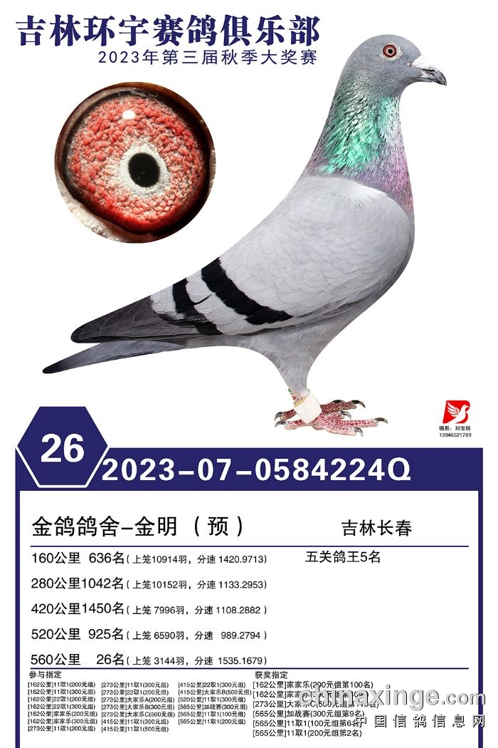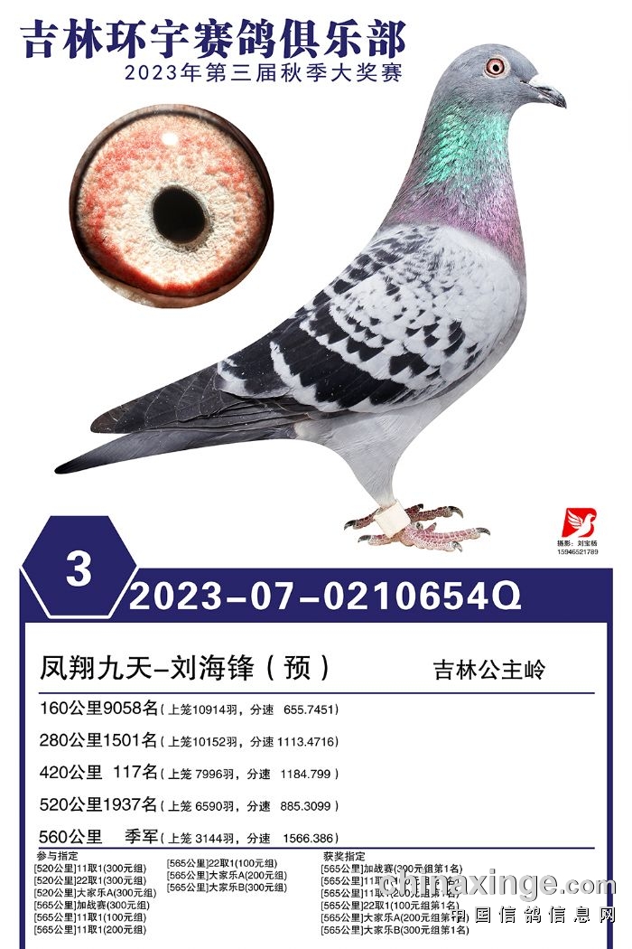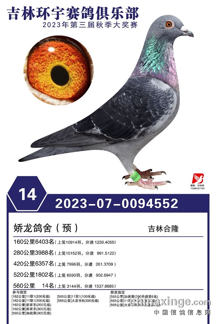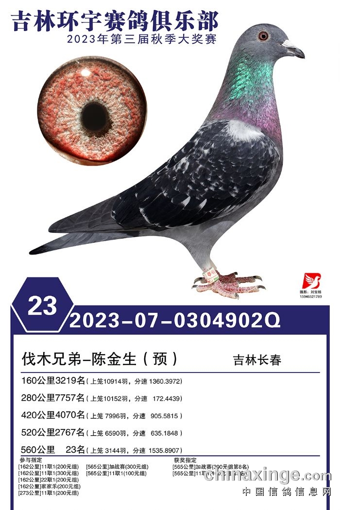 吉林环宇(大棚)2023年加站赛1-30名获奖鸽照片赏析