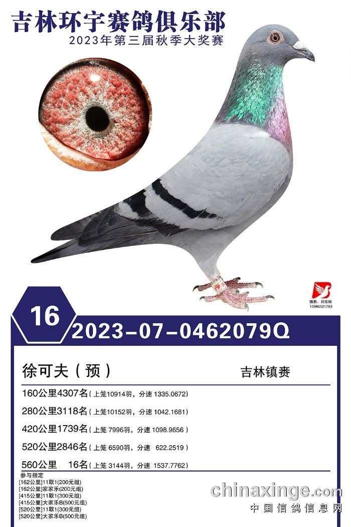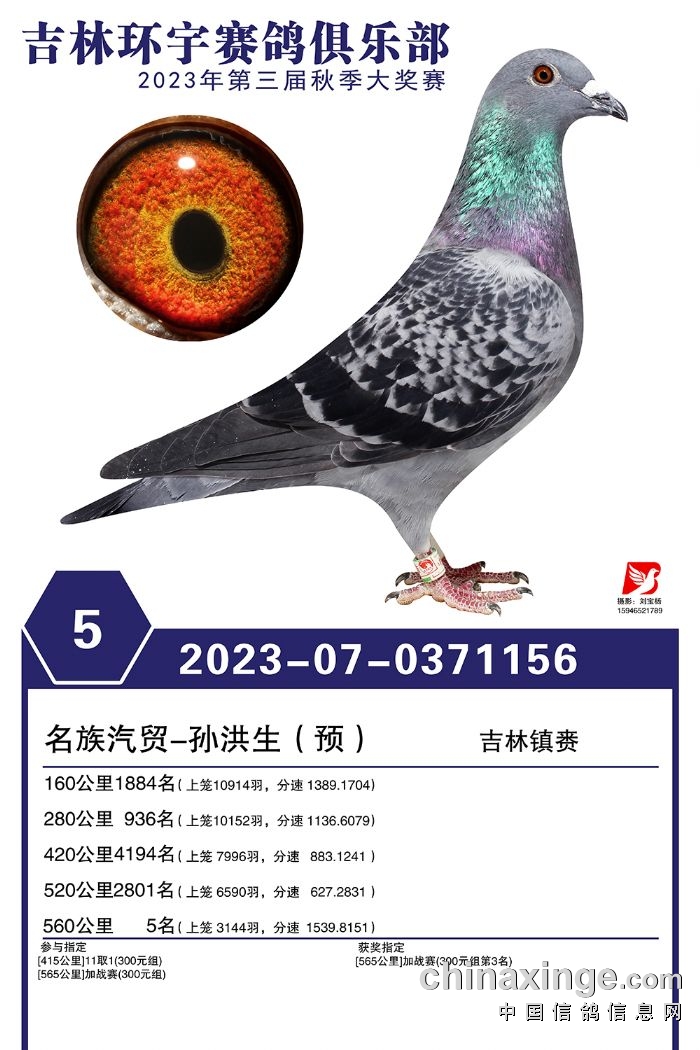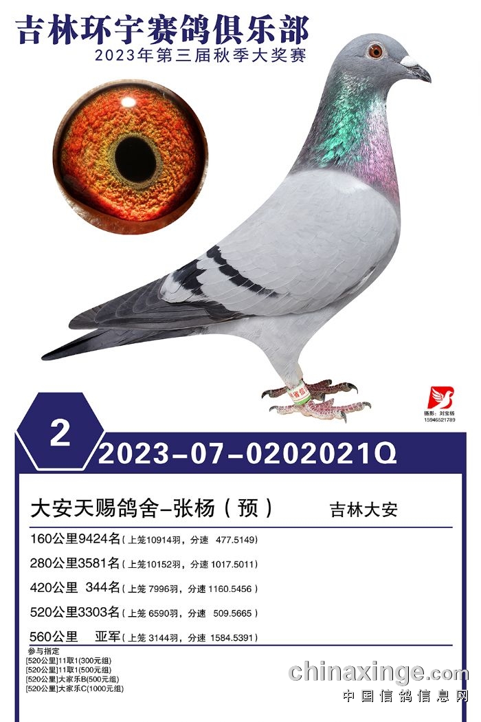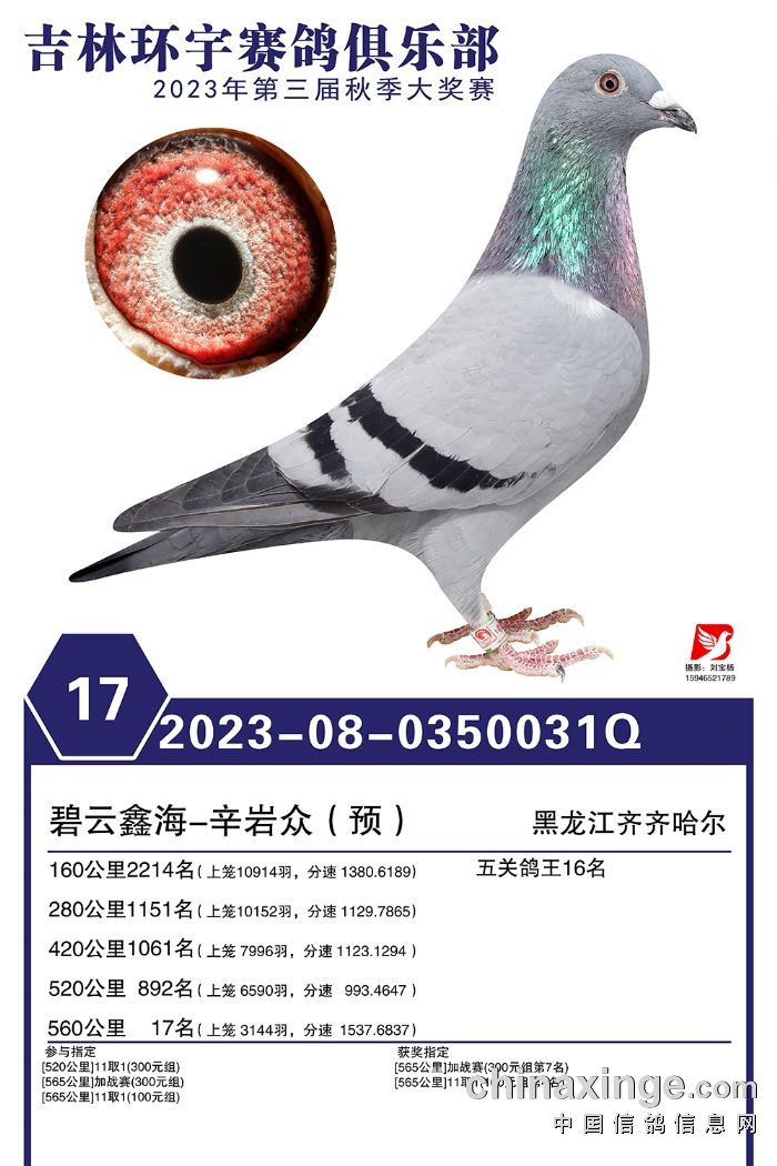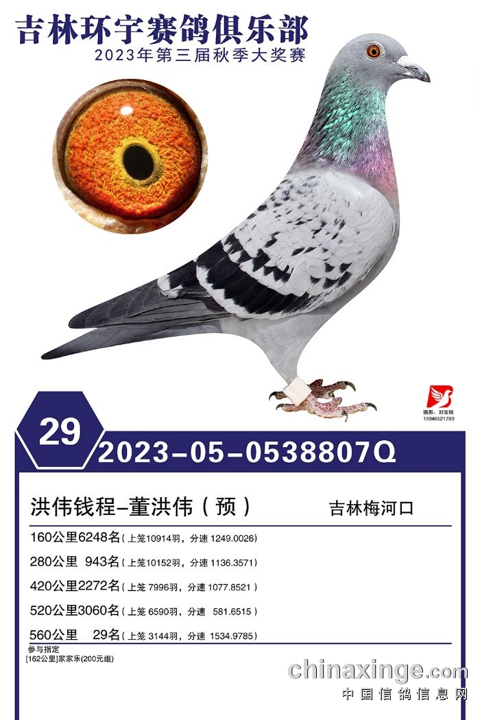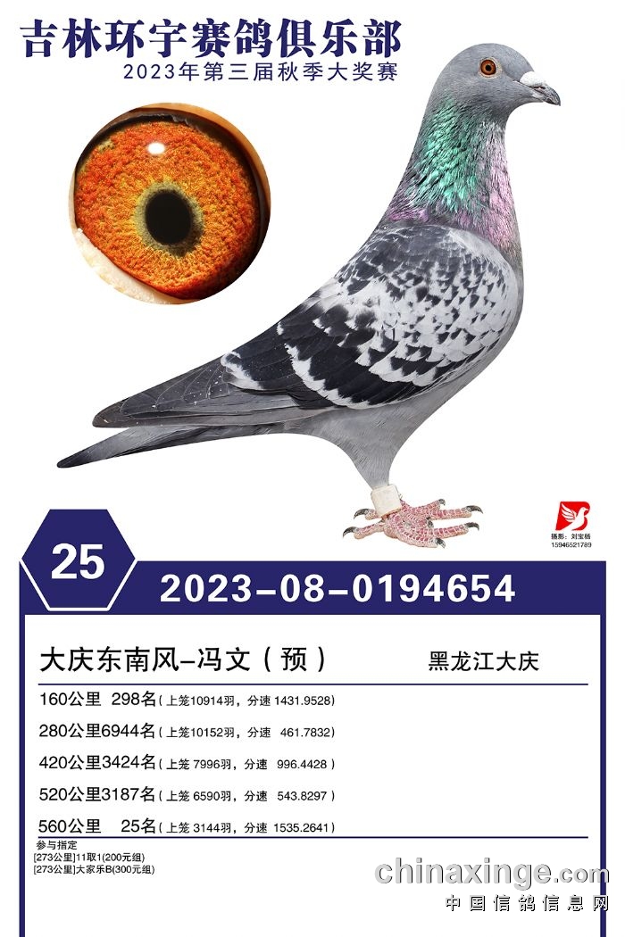 吉林环宇(大棚)2023年加站赛1-30名获奖鸽照片赏析