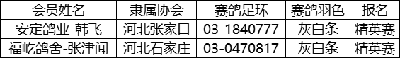 天津宇航VIP赛鸽公棚精英赛未上笼名单