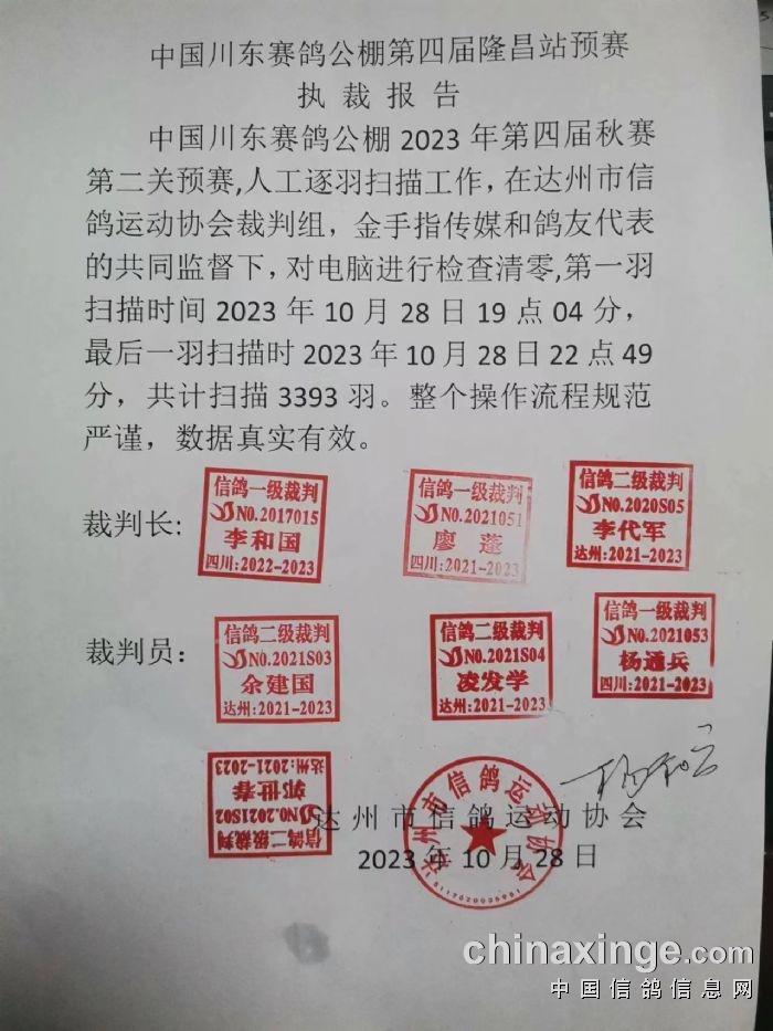 中国川东赛鸽公棚第四届预赛执裁报告