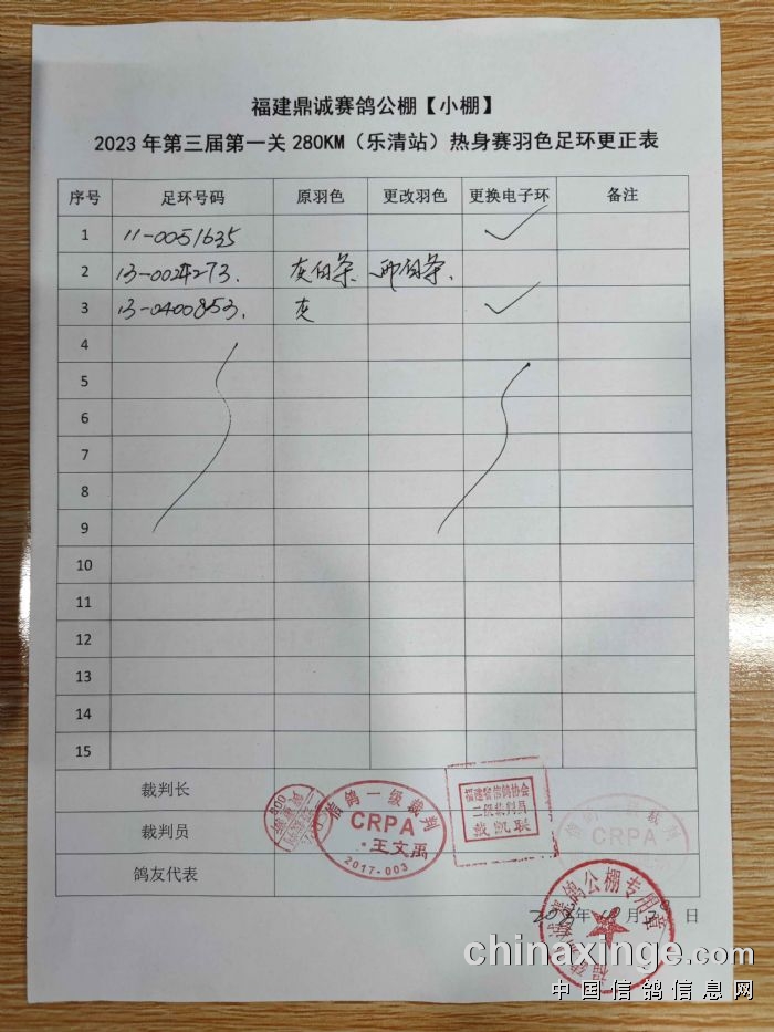 鼎诚(小棚)第一关280KM(乐清站)热身赛羽色电子环更改清单
