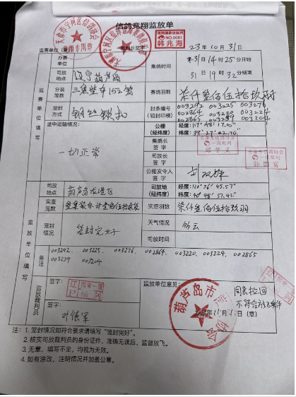 天津信泽慧海公棚300公里第一关司放地,归巢地均不具备开笼条件,在天津市信鸽协会,宁河区信鸽协会,葫芦岛信鸽协会和滨海公证处的共同商议决定300公里比赛取消赛鸽拉回。