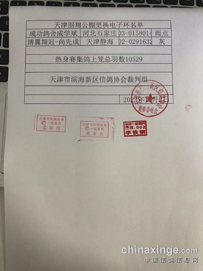 天津丽翔赛鸽公棚400公里更换电子环清单