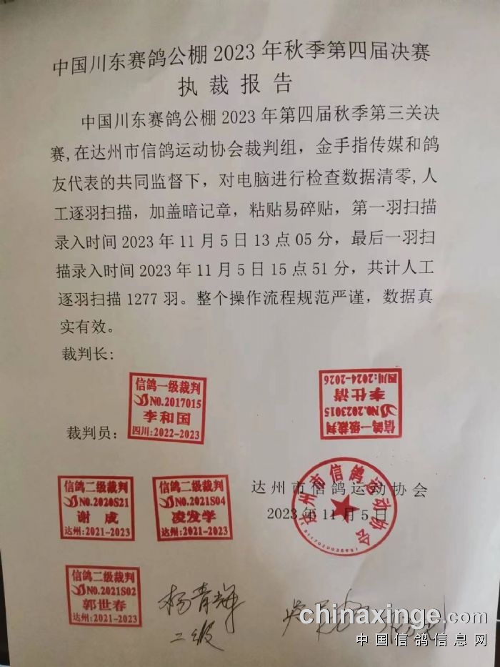 中国川东赛鸽公棚第四届决执裁报告