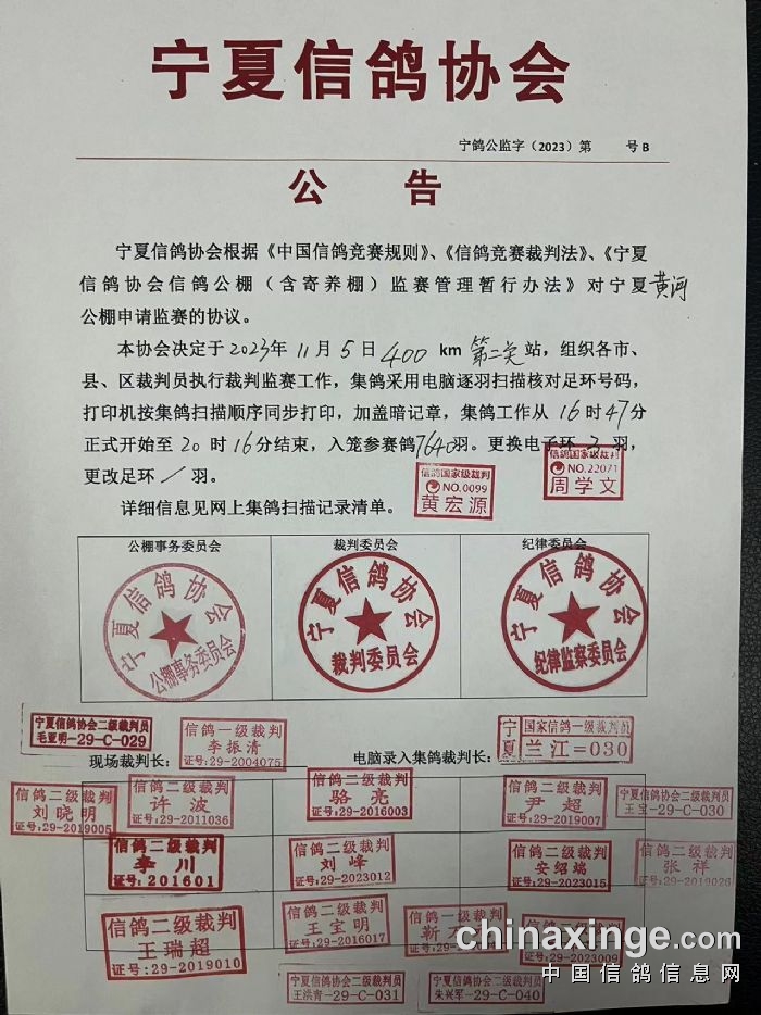 宁夏信鸽协会公告