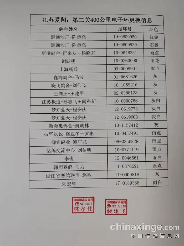 江苏爱翔(秋棚):第三关500-530公里决赛公告