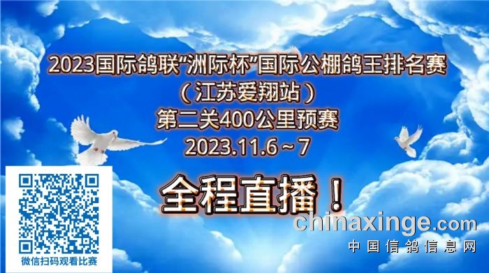 各位鸽友大家好:江苏爱翔赛鸽中心第二关400公里今日早上6点30分开始进行司放地现场直播,请大家准时收看现场开笼放飞过程。