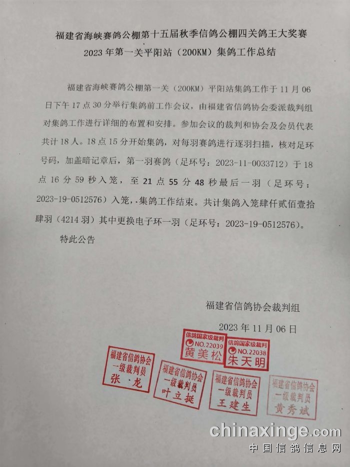 2023年第一关平阳站(200KM)比赛集鸽图选