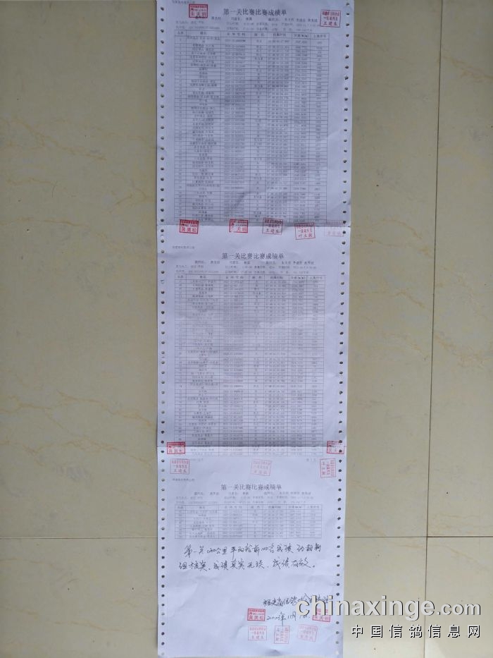 第三关预赛(380-400KM)集鸽清单(按上笼顺序)
