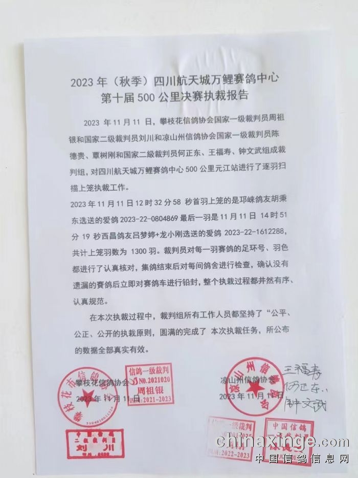 州鸽协裁判组执裁公告