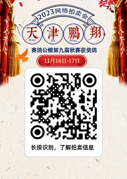 2023年第九届秋赛决赛已圆满结束,在此天津鹏翔公棚向广大鸽友致以诚挚的问候并感谢广大鸽友对天津鹏翔公棚的支持与信赖。现本棚定于颁奖暨拍卖,欢迎您的莅临。同时开通网络拍卖,鸽友可以在家中观看和参与拍卖鸽活动!