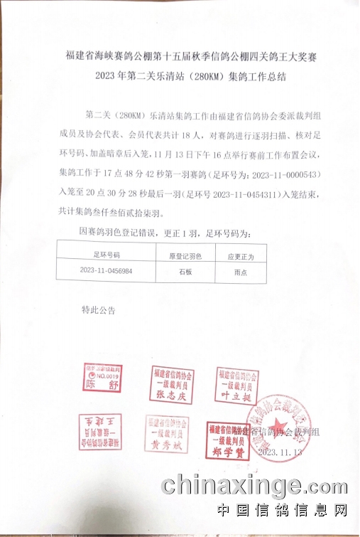 2023年第二关乐清站(280KM)集鸽图选